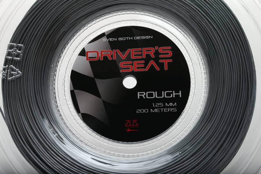 DRIVER’S SEAT: a twisted poly: lots of spin and stiffer sort of like Luxilon ALU with a twist. In silver. 125mm / 17g