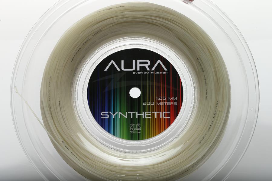 The multifilament, Aura, is soft, with great feel for those touch volleys, think Tommy Paul.